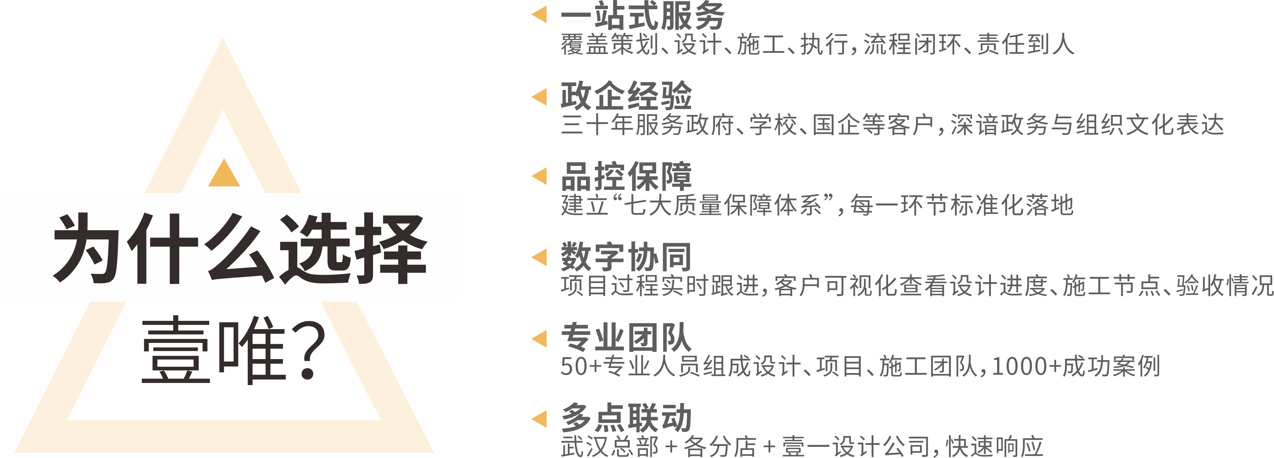 武汉壹唯文化传媒有限公司,始创于1993年,三十余载深耕政企文化建设领域,是一家专注于为政府、国企、学校等单位提供“文化墙/展厅、标识系统、会议活动、视频影像、图文广告”等服务的一站式文化建设机构。